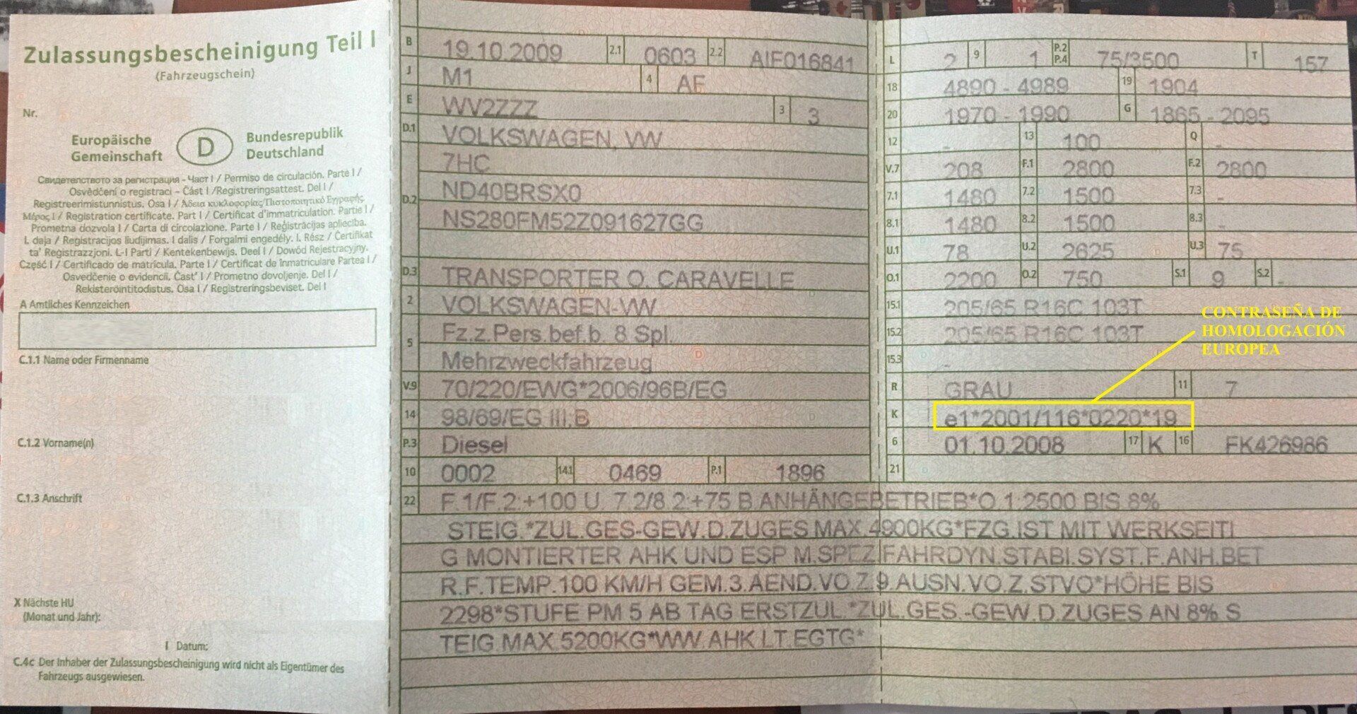 Matriculación a través de ficha reducida para un RENAULT KANGOO tipo W con contraseña de homologación europea